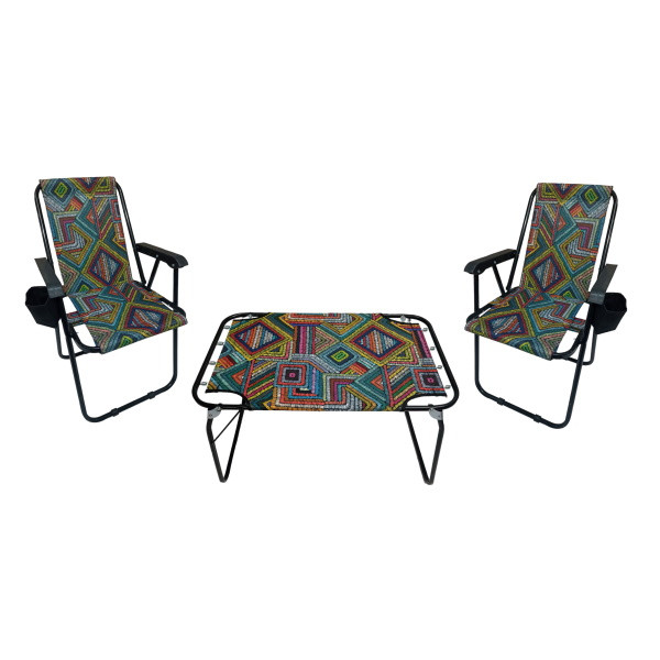 میز و صندلی سفری میزیمو مدل برزنتی پشتدار کد 7671 مجموعه 3 عددی