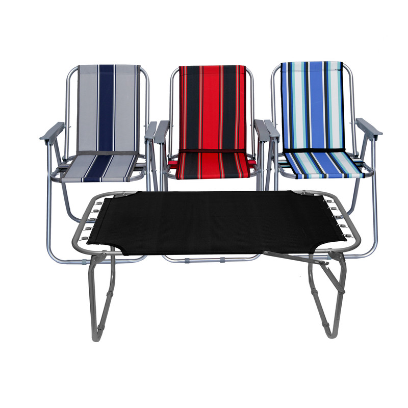 میز و صندلی سفری میزیمو مدل برزنتی پشتدار کد 7884 مجموعه 4 عددی