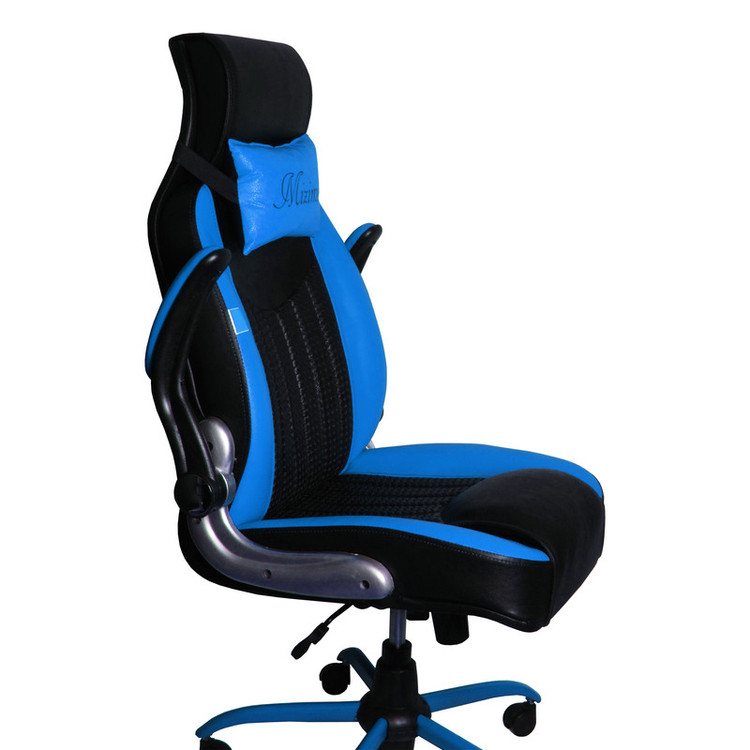 اگر شما علاقمند استفاده طولانی مدت از کنسول، بازی های ویدیوئی و کامپیوتر شخصی خود هستید، نیاز به یک صندلی نرم و راحت، ارگونومیک و طبی دارید که شما را از خستگی و دل زدگی استفاده طولانی مدت حفظ کند و سلامت بدنی شما تامین گردد. این صندلی در اولین نگاه شما را مجذوب ظاهر زیبا و شخصی سازی شده خود مینماید. محصولات شرکت میزیمو بر مبنای اصول ارگونومیک طراحی شده است. نوع مکانیزم به کار گرفته شده در این صندلی قابلیت تاب خوردن جهت رفع خستگی را به شما می دهد و زاویه پشتی آن تا 45 درجه قابل تنظیم است. دسته های این صندلی به منظور محافظت از ساعد و آرنج دارای ابر می باشد. همچنین با وجود بالشتک طبی پشت سری و ارگونومی گودی کمر، این صندلی موجب افزایش بازه پشتیبانی از شکل طبیعی ستون فقرات و گردن شده است. این محصول چشمگیر و خاص که قابل استفاده بعنوان صندلی گیمینگ و یا کامپیوتر است، با رنگ مشکی و آبی، نمای زیبا و مدرنی به محیط شما می بخشد.