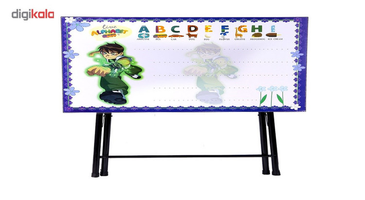 میز تاشو تنظیم شو یاس طرح عروسکی که بسیار مناسب است برای محیط آپارتمان و خانه های کوچک، این میز را می توانید در مواقع عدم نیاز جمع کرده و کنار بگذارید، سطح این میز وایت بردی است و می توانید بر روی آن با ماژیک بنویسید ، علاوه بر این روی میز حروف انگلیسی کار شده است که برای آموزش کودکان بسیار عالی استصفحه این میز وایت بردی و بسیار منناسب است.این میز را از سن 5 سال به بالا می توانند استفاده نمایند، تنظیم شو بودن این میز به این صورت است که در زیر میز یک درجه تنظیم دارد که تا 5 درجه قابل تنظیم است و می توانید آن را با هر انداره دلخواه تنظیم نمایید.