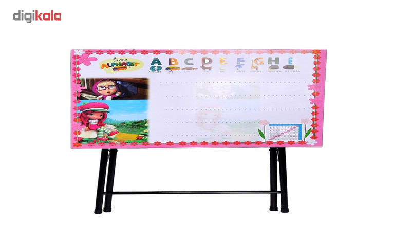 میز تاشو تنظیم شو یاس طرح عروسکی که بسیار مناسب است برای محیط آپارتمان و خانه های کوچک، این میز را می توانید در مواقع عدم نیاز جمع کرده و کنار بگذارید، سطح این میز وایت بردی است و می توانید بر روی آن با ماژیک بنویسید ، علاوه بر این روی میز حروف انگلیسی کار شده است که برای آموزش کودکان بسیار عالی است . و یک جدول ضرب هم به صورت فرمولی چاپ شده است که بسیار مناسب است برای آموزش جدول ضرب. صفحه این میز وایت بردی و بسیار منناسب است.این میز را از سن 5 سال به بالا می توانند استفاده نمایند، تنظیم شو بودن این میز به این صورت است که در زیر میز یک درجه تنظیم دارد که تا 5 درجه قابل تنظیم است و می توانید آن را با هر انداره دلخواه تنظیم نمایید.