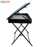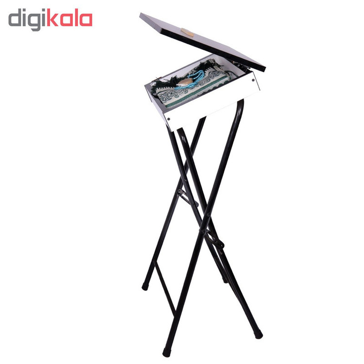 میز تاشو و تنظیم شو نماز علاوه بر جمع شدن در هنگام عدم نیاز، قابلیت تنظیم ارتفاع برای تمام سنین را هم دارد .این میز دارای یک باکس جادار در زیر صفحه است که برای گذاشتن مهر و جانماز و.... بسیار مناسب است.علاوه بر این صندلی این میز هم قابلیت تاشدن و جمع شدن را دارد تا در صورت عدم نیاز فضای زیادی را اشغال نکند.ویژگی دیگر این میز و صندلی را سبک بودن می توان دانست به همین علت حتی در هنگام مسافرت می توان این میز را با خود برد.روی سطح میز نگهدارنده مهر گذاشته شده است تا مهر به راحتی بر روی این قسمت قرار گیرد.