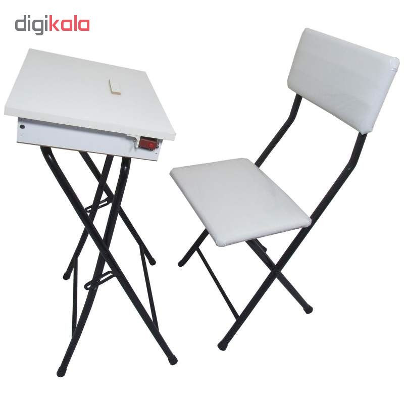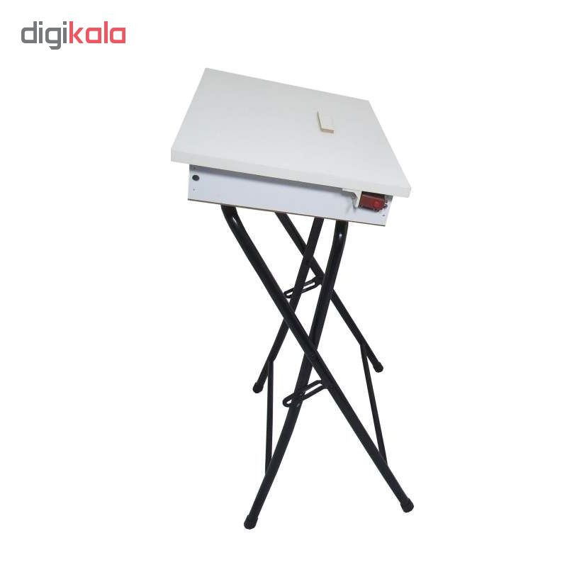میز تاشو و تنظیم شو نماز علاوه بر جمع شدن در هنگام عدم نیاز، قابلیت تنظیم ارتفاع برای تمام سنین را هم دارد .این میز دارای یک باکس جادار در زیر صفحه است که برای گذاشتن مهر و جانماز و.... بسیار مناسب است.علاوه بر این صندلی این میز هم قابلیت تاشدن و جمع شدن را دارد تا در صورت عدم نیاز فضای زیادی را اشغال نکند.ویژگی دیگر این میز و صندلی را سبک بودن می توان دانست به همین علت حتی در هنگام مسافرت می توان این میز را با خود برد.روی سطح میز نگهدارنده مهر گذاشته شده است تا مهر به راحتی بر روی این قسمت قرار گیرد.