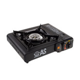اجاق گاز سفری AS مدل سامسونتی به همراه 4 عدد کپسول سوخت 210 گرمی اجاق مسافرتی یا قابل حمل بوده و جهت استفاده در فعالیت های کمپینگ ، کوهنوردی ، مسافرت و استفاده در باغ و ویلا گزینه ای بسیار ایده آل و کاربردی بشمار میآید، این اجاق گاز از نظر کارایی و کاربرد کاملا شبیه به اجاق گاز خانگی طراحی گردیده و علاوه بر کپسول های گاز استوانه ای سفری که حاوی گاز بوتان است ، به راحتی به انواع کپسول های مایع نیز متصل شده و قابل استفاده میباشد. اجاق گاز مسافرتی مدل AS مجهز به یک شعله پوش با قابلیت جداسازی است، این شعله پوش به صورت گسترده طراحی شده و تمام سطح ظروف پخت و پز را پوشش میدهد ، از دیگر ویژگی های مهم در اجاق مسافرتی AS مقاومت بالای آن در برابر نفوذ باد است ، این اجاق بر خلاف سایر اجاق های پیک نیک که شعله آنها در برابر باد به راحتی خاموش میشود ، از مقاومت بالایی در برابر باد برخوردار است و جهت استفاده در فضای باز کاربرد بسیاری دارد. اجاق گاز سفری مجهز به یک فندک سر خود بوده و توسط سیستم جرقه زنی الکترونیکی که در قسمت سر شعله تعبیه گردیده به راحتی روشن میگردد ، علاوه بر این مجهز به یک سنسور تشخیص فشار بوده که سبب افزایش ایمنی هنگام استفاده میشود همچنین مجهز به یک هاردکیس مستحکم و مخصوص بوده که علاوه بر راحتی هنگام حمل و نقل و جا به جایی در برابر ضربه نیز از اجاق گاز محافظت مینماید.