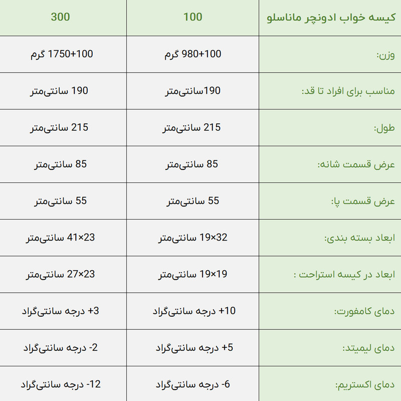 کیسه خواب ادونچر مدل ماناسلو 100