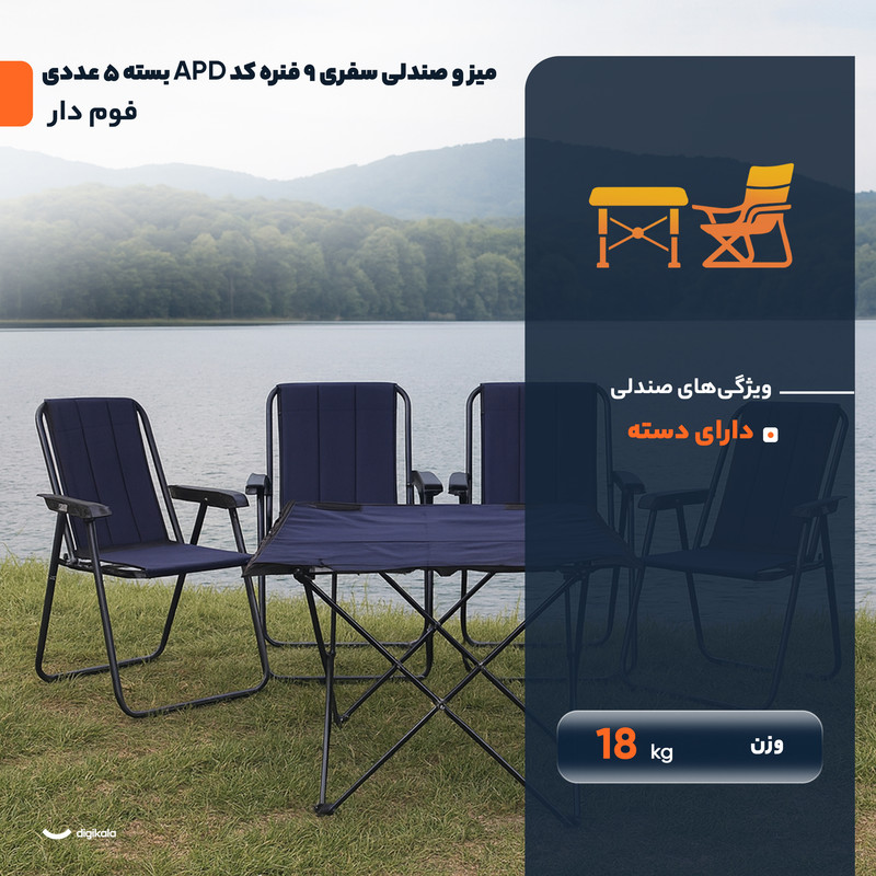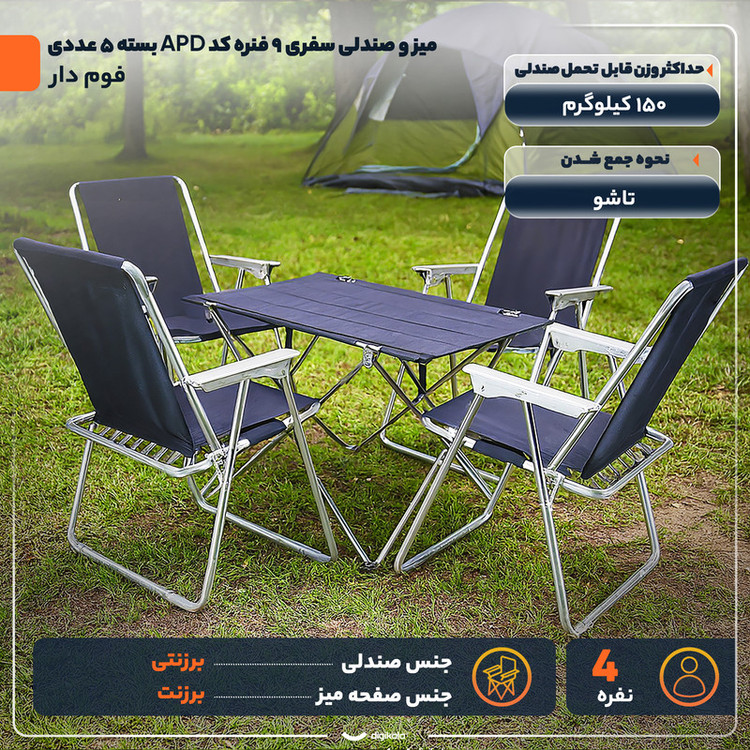 میز و صندلی تاشو سفری 4 نفره مدل فوم دار 9 فنره کد APD بسته 5 عددی