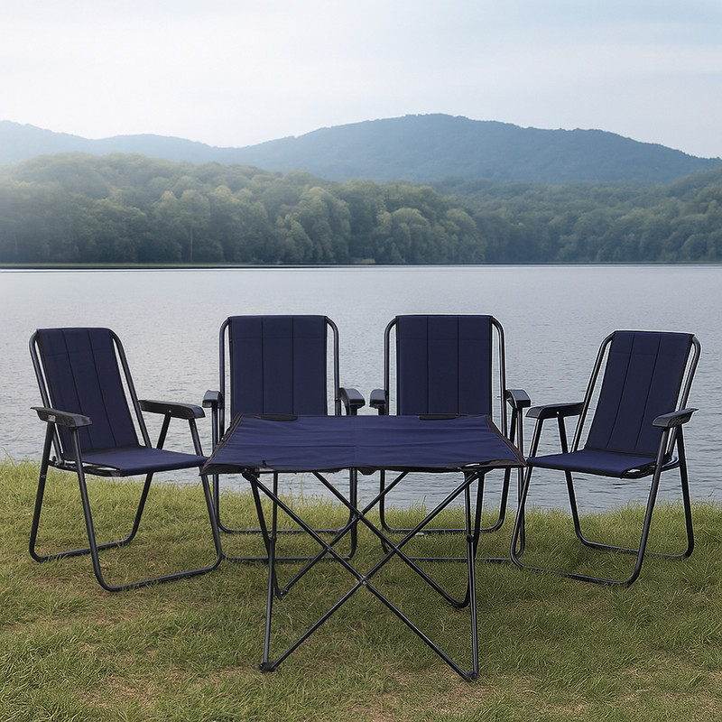 میز و صندلی تاشو سفری 4 نفره مدل فوم دار 9 فنره کد APD بسته 5 عددی