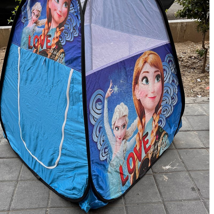 چادر بازی کودک مدل فنری طرح آنا و السا ( فروزن ) رنگ آبی با درب زیپی کد2