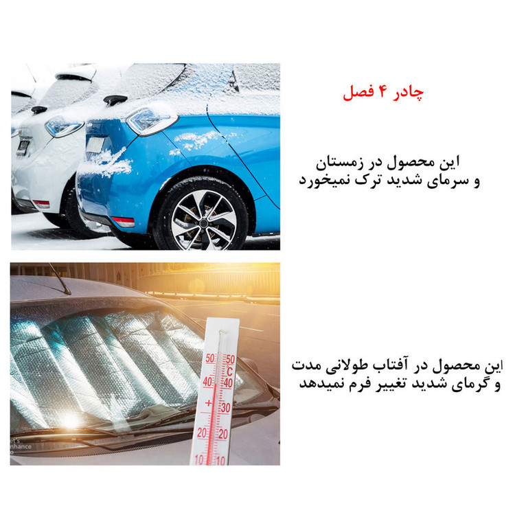سایر توضیحات: 100 درصد ضدآب - 100 درصد ضد آفتاب - دارای زیپ در سمت در راننده - دارای آستر پنبه جودون (اسپاندکس) که مانع از خش افتادن به بدنه خودرو میشود.