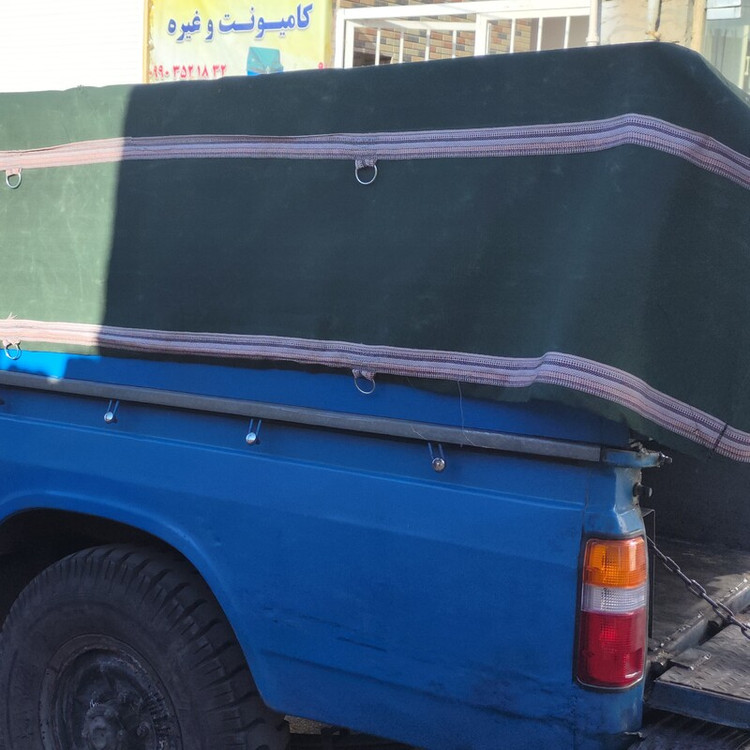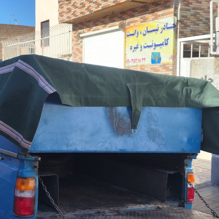 چادر نیسان 3در4 چادر وانت برزنتی با 4 ردیف قلاب و دم اسبی با دوخت سفارشی 12 متری استاندارد نیسان