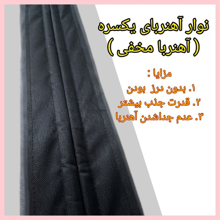 پرده توری مگنتی ( مغناطیسی ) مدل آهنربا یکسره ( مخفی ) ضربه گیردار بهترین وسیله جهت جلوگیری از ورود حشرات و موجودات موذی ، گرد و خاک و... نصب آسان و سریع بدون نیاز به ابزار نمای زیبا و شیک قابل شستشو تهیه شده از بهترین متریال پرده ها دورتادور نواردوزی شده بالا و کناره ها : دارای چسبک پشت چسب دار مسلح جهت نصب وسط : نوار اهنربا یکسره (مخفی ) و ضربه گیر پایین : چرم و وزنه تعبیه شده جهت ایستایی در مقابل باد