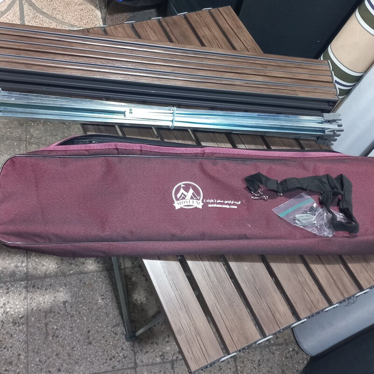 میز تاشو مسافرتی صفحه بسیار محکم فایبر گلاس پایه ها قوطی گالوانیزه ضدزنگ قطعات با ضمانت نشکن تحمل وزن بالا صفحه اکاردئونی تاشو ابعاد ۵۵×۸۵ به ارتفاع ۶۵ کاور برزنتی جودون بند کوله پشتی