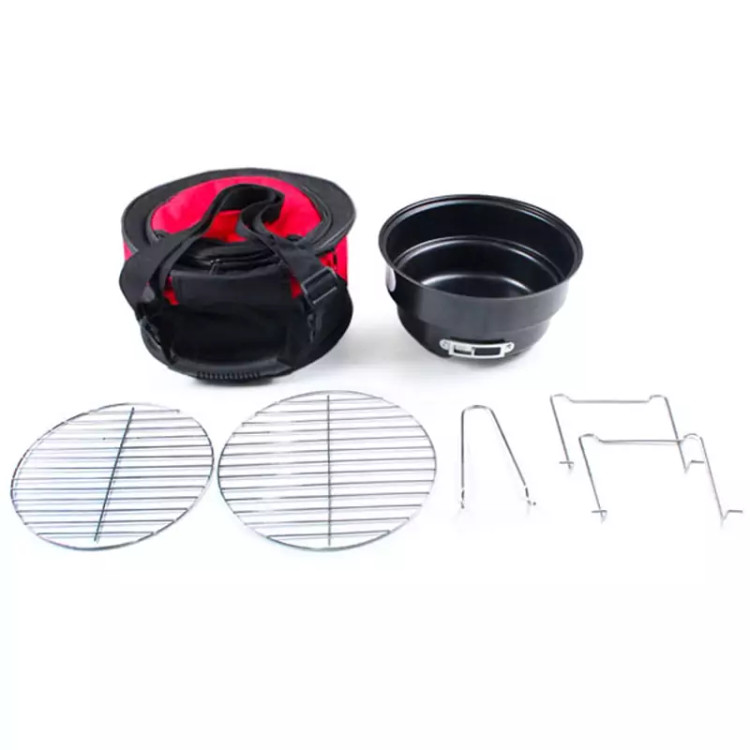 یک محصول فوق العاده مفید و کارآمد برای درست کردن غذا در هر مکانی میباشد.این منقل به دلیل ابعادی که دارد برای مسافرت ها بسیار مفید میباشد. بدنه این منقل از فلز ساخته شده که دارای یک لایه روکش رنگ کوره ای میباشد تا در برابر رطوبت و زنگ زدگی مقاومت بالایی داشته باشد. این محصول دارای دو عدد توری فلزی میباشد که برای پخت و پز بسیار مفید و کارآمد است. همچنین دارای یک عدد انبر فلزی میباشد که برای جابجا کردن توری یا غذا استفاده میشود. پایه های این منقل بسیار محکم و مقاوم میباشند. این باربیکیو به همراه یک عدد کیف مخصوص عرضه میشود که علاوه بر آسان نمودن حمل و نقل ، از وسایل و تجهیزات مربوطه بخوبی محافظت میکند. همچنین این کیف دارای قسمتی مخصوص سرد نگه داشتن مواد غذایی است. با استفاده از این باربیکیو زغالی یک کباب یا غذای خوشمزه برای خانواده و دوستانتان درست کنید.