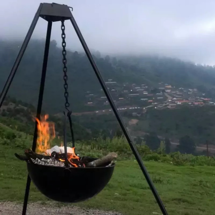 یک وسیله بسیار کارآمد و مفید میباشد که توجه بسیاری از طبیعت گردان را به خود جذب کرده است. این از سه قسمت سه پایه، آتشدان و زنجیر تشکیل شده که نصب آن بسیار ساده و آسان است. سه پایه این محصول از جنس آهن ضخیم ساخته شده و در برابر حرارت مقاومت بسیار بالایی دارد. همچنین قسمت آتشدان این محصول نیز از یک نوع فلز فنری ساخته شده که در صورت وارد شد ضربه شدید یا تاب برداشتن آن را با کمی فشار به حالت اول برگردانید. در عین حال از استحکام بالایی برخوردار است. قسمت اصلی این مجموعه آتشدان است که به صورت نیم دایره طراحی شده و به وسیله دسته فولادی، به زنجیر سه پایه متصل میشود. این محصول وزن بسیار کمی دارد و برای برنامه های کمپینگ و طبیعت گردی بسیار مناسب میباشد.