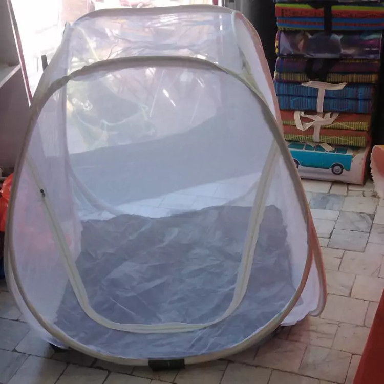 ابعاد کف 1 در 1 متر تور خارجی با مش بندی بسیار ریز برای جلوگیری از ورود هرگونه حشره و تبادل هوای بهتر است. کف پشه بند اسپاند گرم بالا می باشد دارای کاور حمل و جابجایی دارای 2 عدد زیپ فلزی مناسب برای خواب و بازی کودک
