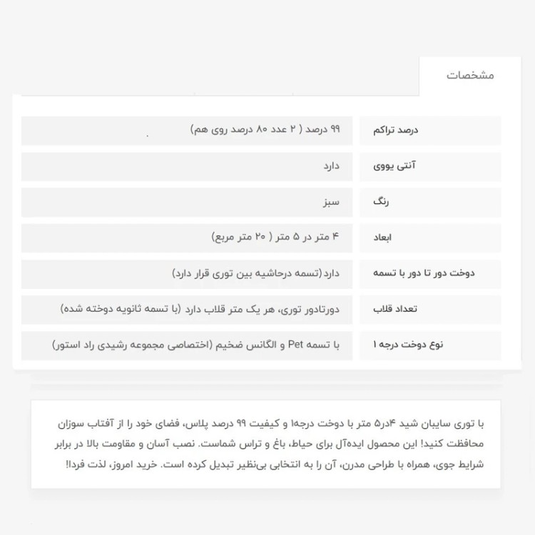 توری شید، 4در5، 99 درصد پلاس(دولایه 80 درصد)