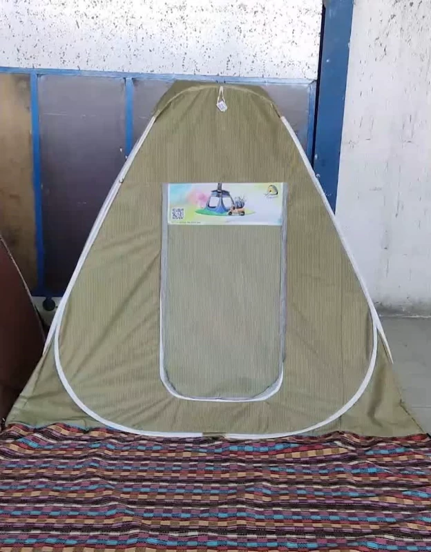 دارای حلقه و کیسه مهاری ،سه پنجره توری دار و همچنین درب توری دار حریر ،یکی از پنجره به سمت بالا باز میشود جهت تهویه بهتر هوای داخل چادر( به عنوان هواکش)