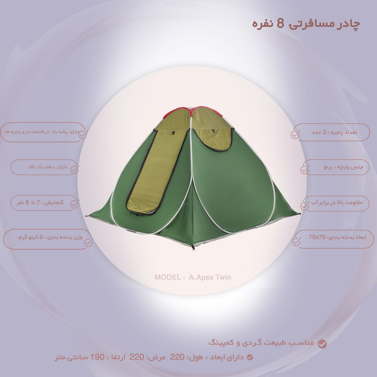 چادر مسافرتی 8 نفره مدل دو رنگ