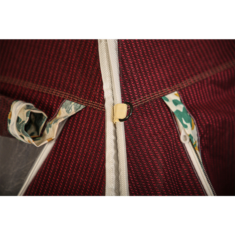 چادر مسافرتی برنو سان ساخته شده از جنس برزنت شمعی با بافت پلی استر که در برابر خراش و بارندگی مقاومت بسیار خوبی دارد.جایگاه فنر از جنس نوار ابریشم ساخته شده است که در برابر سایش مقاومتی بسیار خوبی دارد.چادر فنری برنو سان دارای سه عدد پنجره و یک درب ورودی بزرگ که دارای پشه بند است.زیپ های شماره درب از نمره 10 به کار رفته است که دوام و طول عمر خوبی دارد.جنس کفه چادر از کانتنیری تولید شده است.