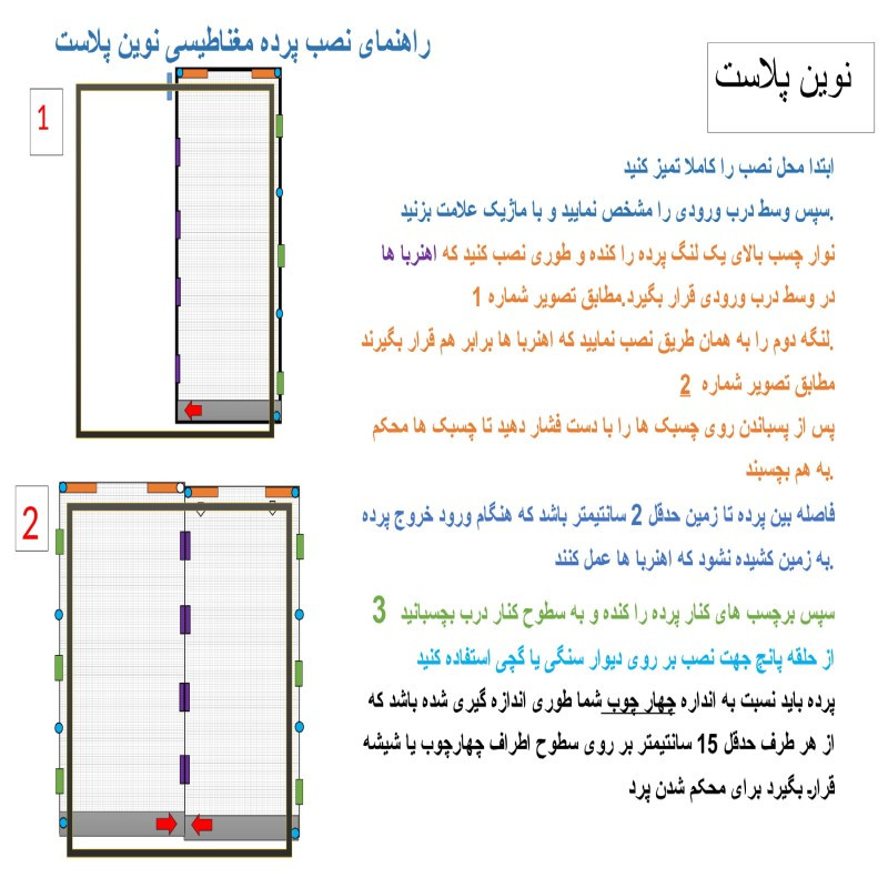 جنس پرده از توری فایبر گلاس نسوز میباشد قسمت بالای پرده با استفاده از برزنت دوخته شده جهت استقامت بالا است استفاده از چسبت پشت چسب دار جهت نصب اسان پرده بدون نیاز به ابزار میباشد پرده بر روی دیوار کچی،سیمانی،اجری،فلزی،چوبی،شیشه ای با استفاده از چسبک موجود روی پرده یا با استفاده از میخ دوپا یا پیچ رولپلاک قابل نصب است