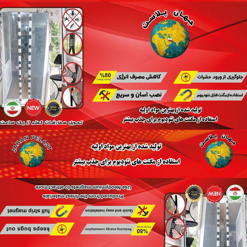 با نصب راحت پرده پلاستیکی آهنربایی تا 90 درصد در مصرف انرژی گرمایشی و سرمایشی فروشگاه و ساختمان خود صرفه جویی کنید. همچنین مانع ورود گرد و غبار و آلودگی به داخل فروشگاه و ساختمان می شود . سیستم مغناطیسی به کار رفته در تولید این پرده های مغناطیسی پلاستیکی باعث می شود پس از رد شدن از آن لبه های پرده به سرعت همدیگر را جذب کند و مانع برودت هوای محیط فروشگاه و یا ساختمان می گردد. جنس پلاستیک بکاررفته دراین محصول طلق با ضخامت 030 کره ای می باشد.