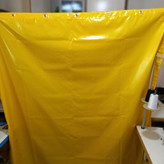 برزنت ضدآب شمعی دوخت پرده حیاط و بالکن و راه پله برای جلوگیری از ورود سرما و آب همراه با حلقه پرسی و نوار دوزی و دور دوخت رنگ زرد ابعاد ۲ در ۱.۷ متر طول