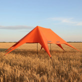 این سایبان با طراحی دو قطبی، ابعادی به طول ۱۳ متر و عرض ۸ متر دارد و فضای سایه بسیار خوبی را فراهم میکند. ارتفاع دو ستون مرکزی آن ۴ متر و ۱۰ سانتیمتر است و وزن کلی این مجموعه به ۳۰ کیلوگرم میرسد.