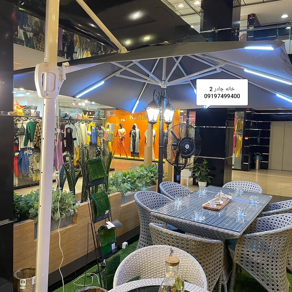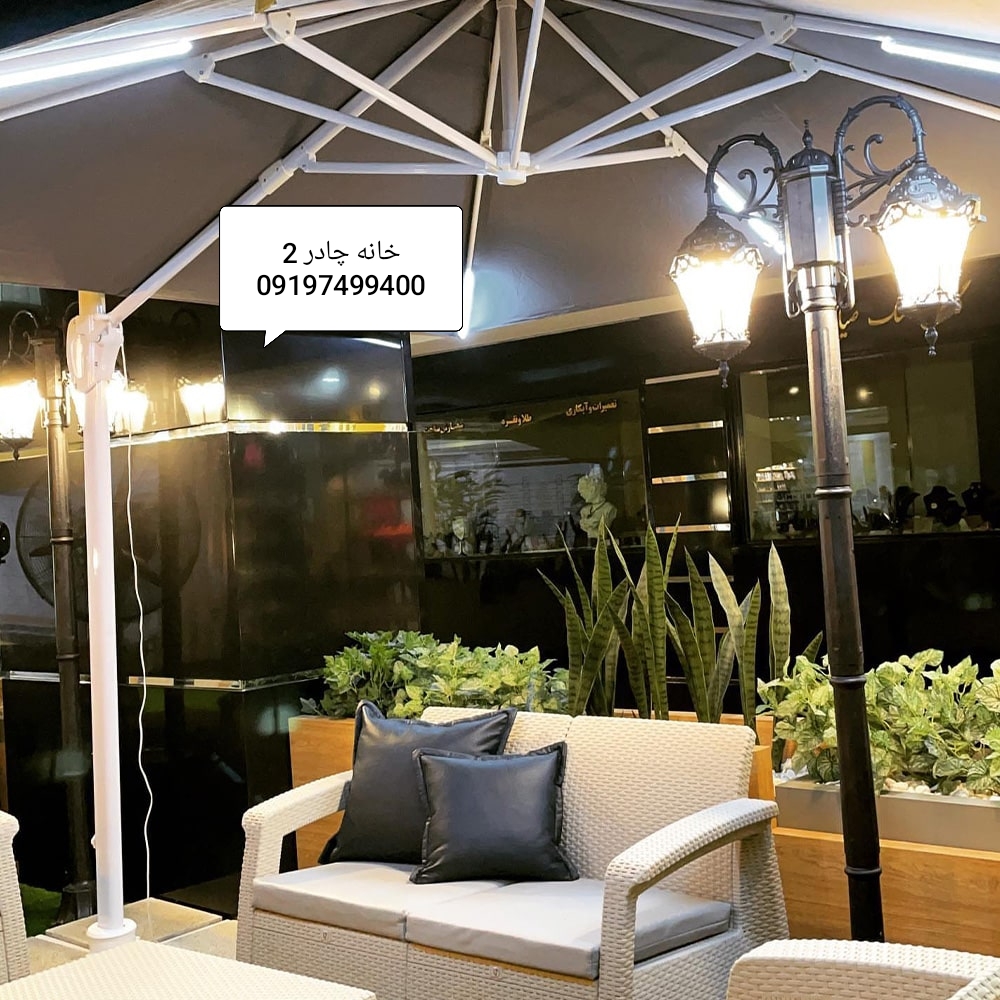 چتر و سایبان پایه کنار مدل روشا با پارچه نانو و بدنه آلومینیوم