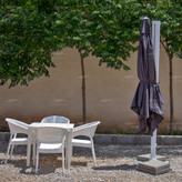 در صورت استفاده در وسط میز شما با قرار دادن پایه چتر در زیر میز و قرار دادن چتر از بالا و باز کردن چتر به صورت دستی از سایه آن استفاده نمایید و میتوان از مزایای چتر باغی سایبان قطر چهار متری استیل، سبک بودن، قابل حمل آسان بودن و از طرفی قیمت پایین تر نسبت به چتر پایه از کنار و هزینه پایین تعمیر در صورت شکستن اشاره کرد.